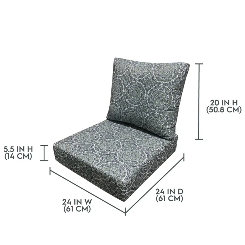 24″x 24″ Premium Blue & Green Medallion Outdoor 2 Piece Deep Seat Cushion